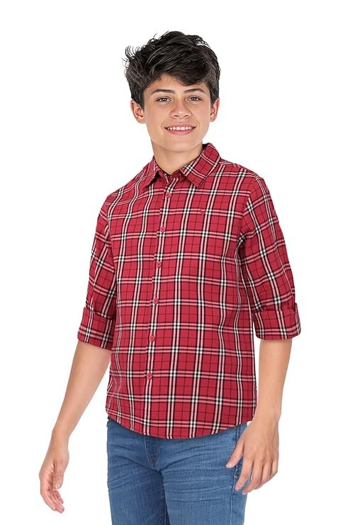 Boys 100% Cotton Checkered Full Sleeve Casual Shirt