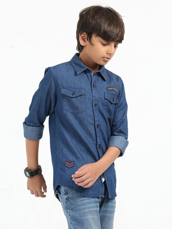Boys Denim Shirt | Denim Blue Full Sleeves,