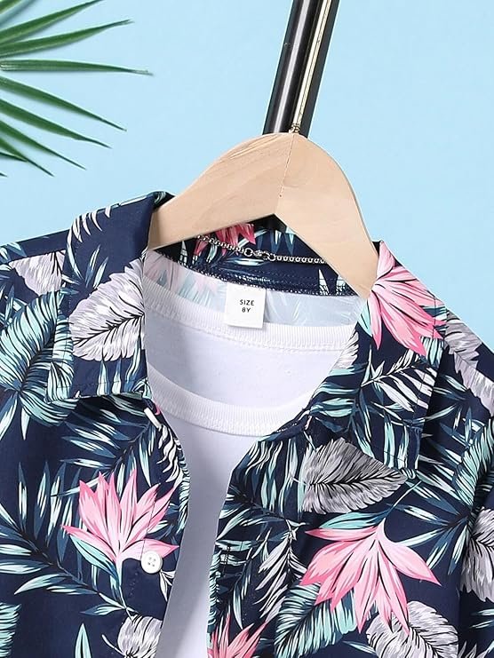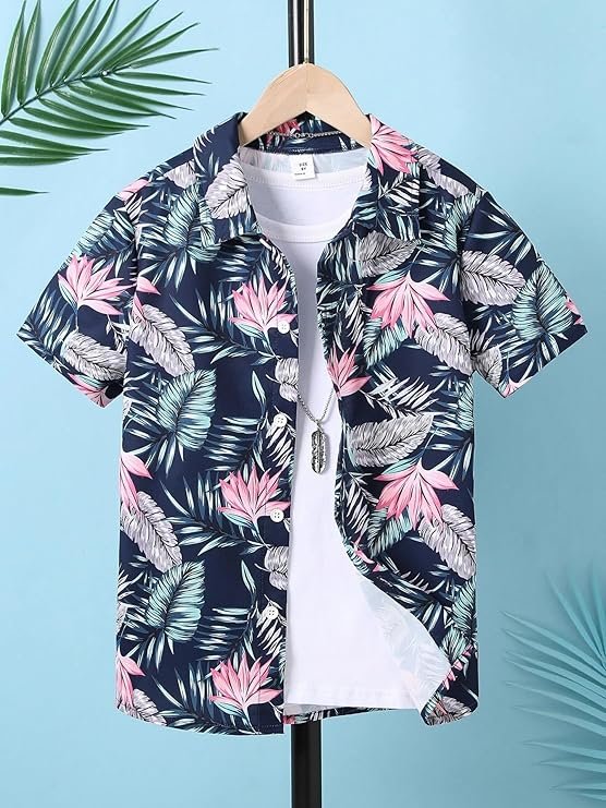 Shirt made from Poly cotton material with Digital Print of tropical Forest pattern shirt hase Short sleve and Suitable any of the season