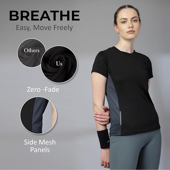 Women’s Solid Quick Dry Sports Half Sleeve Regular Fit Active Wear