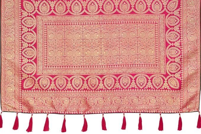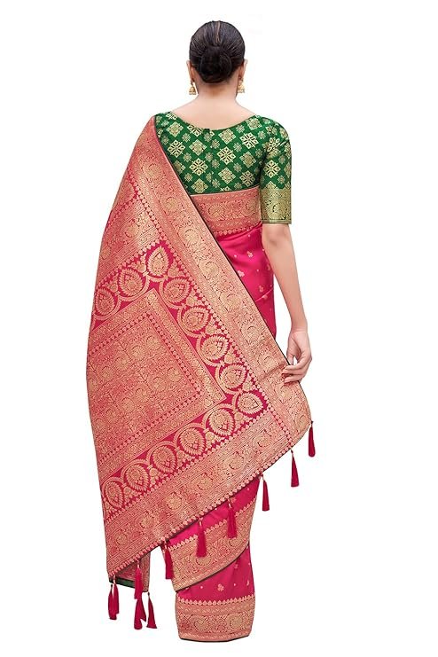 - Product Highlights : Fabric: Banarasi Silk Blend (Saree & Blouse) || Work: Zari Woven (Saree), Zari Woven (Blouse) || Colour: Saree –Pink | Blouse – Green || This Banarasi silk Blend Saree with Subtle Zari Work.