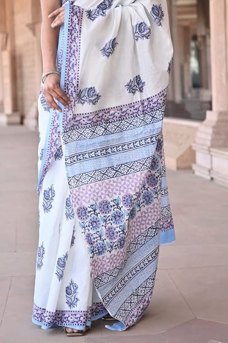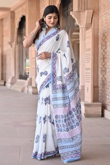 - FABRIC : Mulmul Cotton Saree with Cotton Mulmul fabric Blouse pc || Work: Printed ,Block print,Ajrak print, Traditional Ethnic Look.