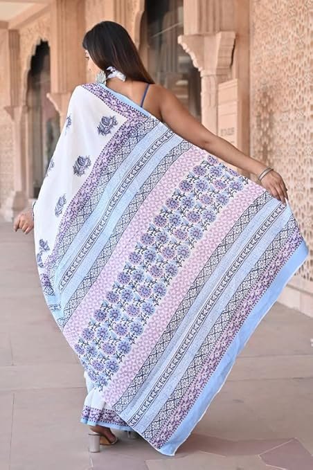 Handicrafts Hand Block Print Mulmul Cotton Sarees for Women | Cotton Mulmul Sarees for Women Attach Blouse Piece 1445