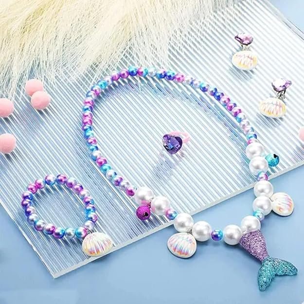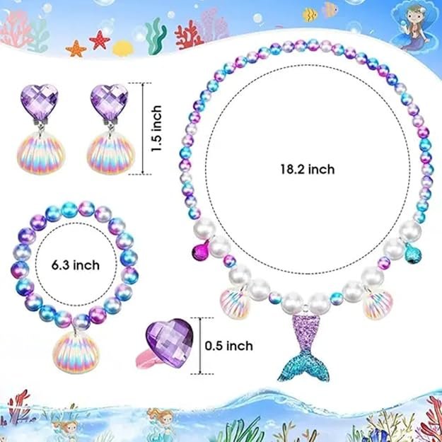 - Complete Mermaid Jewelry Kit: Includes a necklace, bracelet, ring, earrings, and organza bag to create a magical underwater-inspired look for costumes or themed parties.