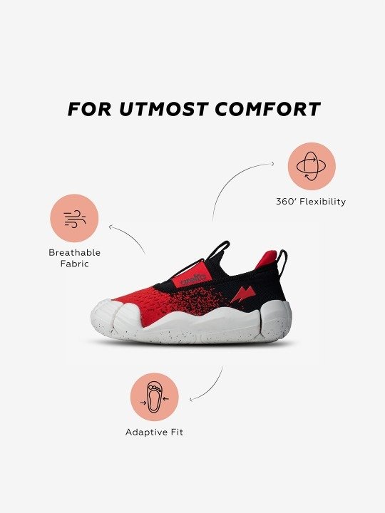 Kids Space Surfer Red Adaptive Fit Breathable Slip-On Sneakers with Anti-Skid Sole