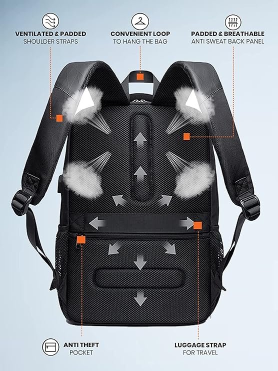 Laptop Backpack for Men and Women, Stylish 26L Capacity, USB Charging Port, Anti-Theft Pocket & Accessories Organizer