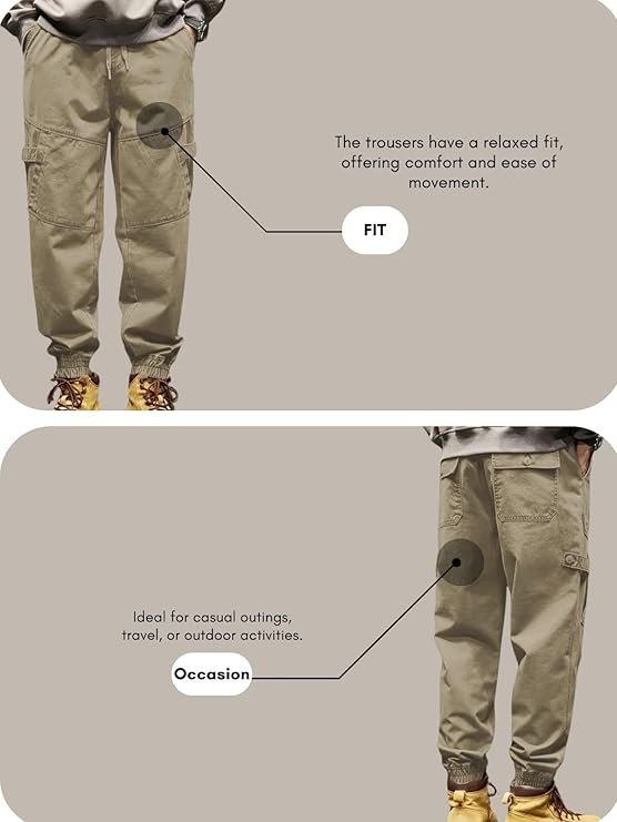 - Trendy & Versatile Fit – A modern cargo for men cotton style with an adjustable elastic hem and a relaxed fit, providing the perfect blend of fashion and functionality.