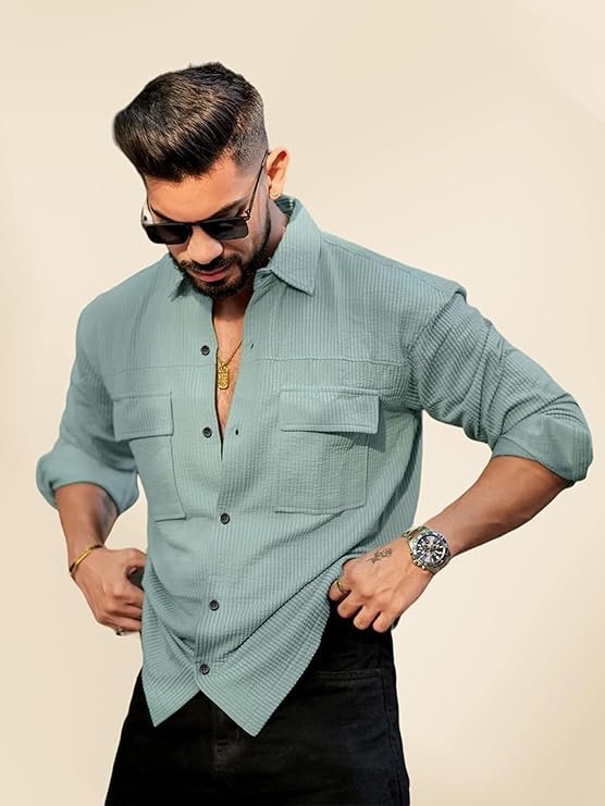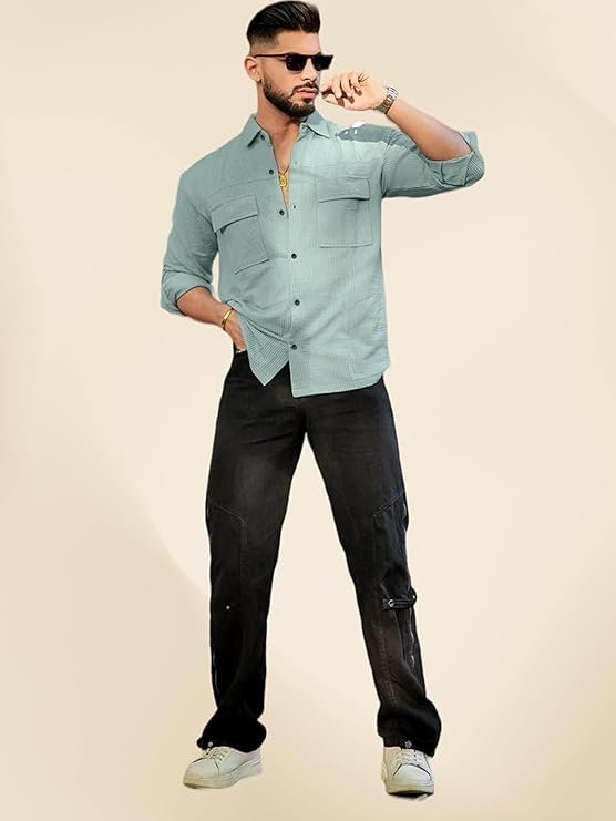 Men's Regular Fit Fancy Double Pocket Casual Shirt for Men Full Sleeves - Cargo