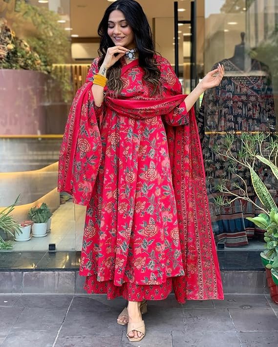 - Style: Anarkali || Length: Calf Length || Sleeves: 3/4 Sleeves || Size Chart- Kurta-S-36 in, M-38 in , L-40 in , XL-42 in , XXL-44 in,Pant :- S-28 in, M-30 in , L-32 in, XL- 34 in , XXL- 36 in,For More Please refer to the size Chart below.