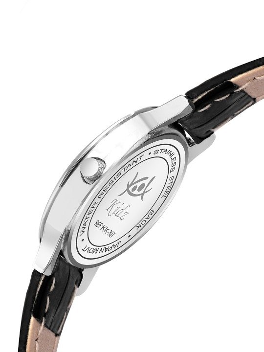 Unisex Kids Black Printed Dial & Black Leather Straps Analogue Watch