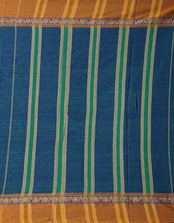 Women Pure Handloom Narayanpet Cotton Saree with blouse piece and Tassels from the Weavers of Andhra Pradesh(UNM33751+Green+free size)