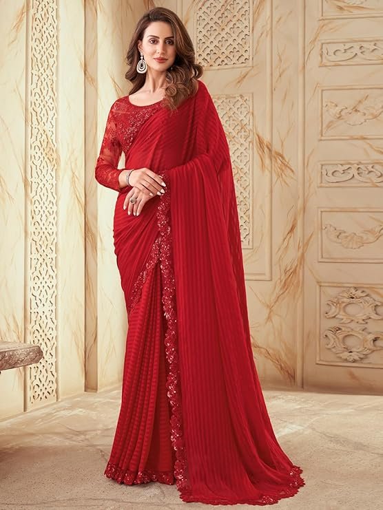 - Colour:: Saree Color: Red | Blouse Color: Red