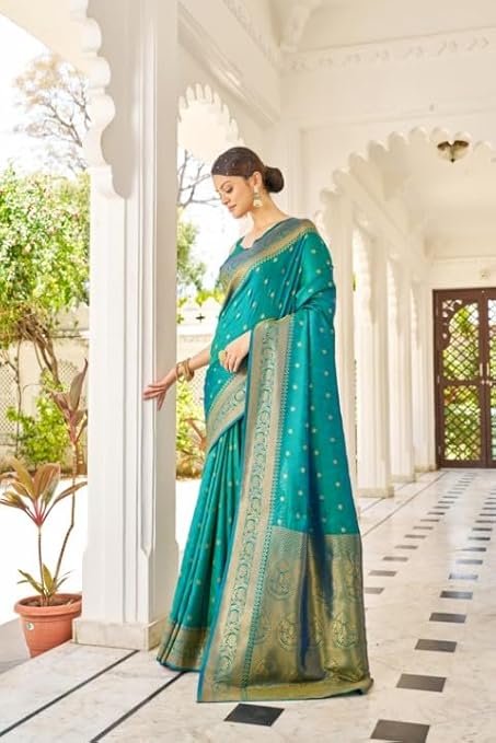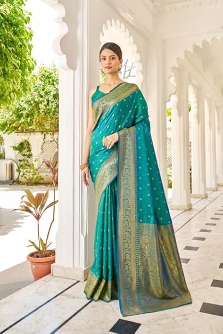 Women's kanjivaram banarasi silk saree for festival Wedding silk with rich pallu Design sarees for women with Unstitched blouse piece