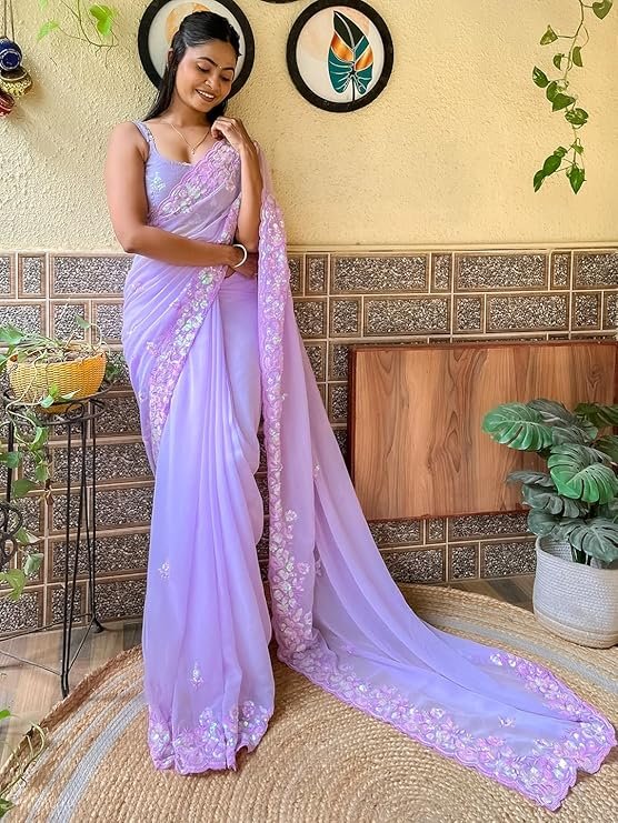 - Color : Lavendar Saree with Lavendar Blouse Piece