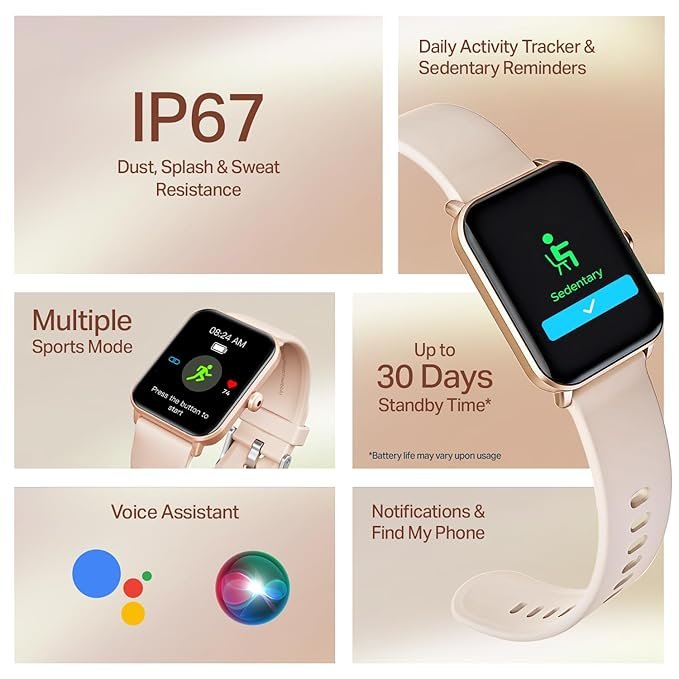 Advanced BT Calling, Functional Crown, Cloud & Custom Watch Faces, Multiple Sports Modes, IP67, HR, Sleep Monitor Smart Watch