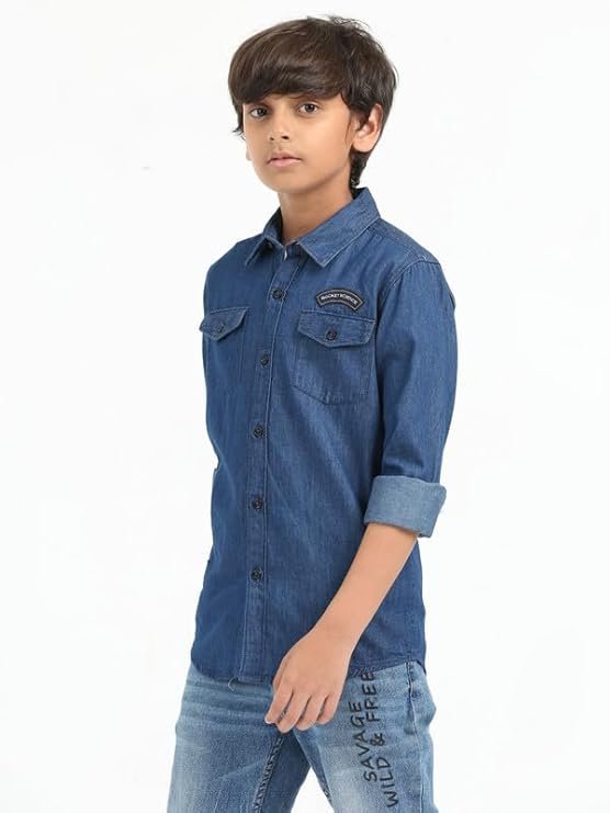 Boys Denim Shirt | Denim Blue Full Sleeves,