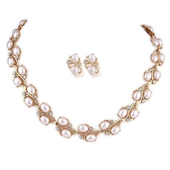 - Stylish latest simulated pearl necklace with earrings and bracelet.