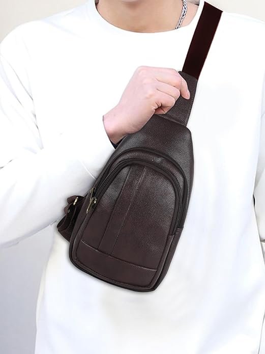 Crossbody Sling Bag for Men Slim Vegan Leather Chest Bag for Men