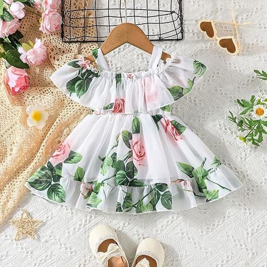 Girl's Lycra Floral Printed Frock Dress for Girls Short Frock Baby Princess Western Dresses| Stylish Fancy Kids Clothing for New Year, Fashion.