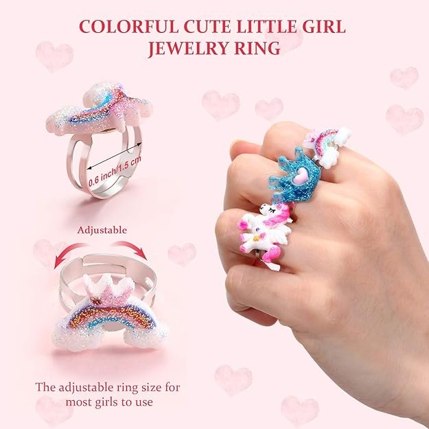 - PERFECT FIT: The unicorn bead bracelets for girls kids have a stretchy design, with a length of approximately 6.3 inches (16 cm), making them suitable for most girls. The adjustable metal rings can be easily resized to fit different finger sizes, with a diameter of around 1.5 cm.