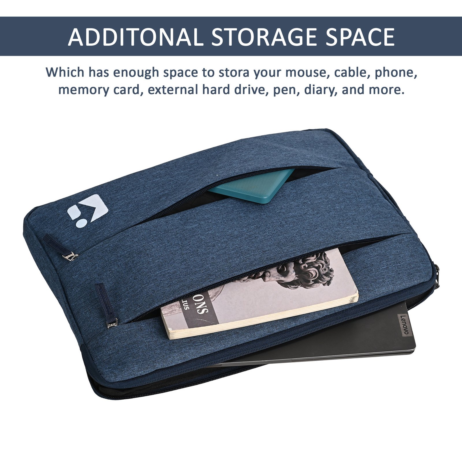 Waterproof Laptop Sleeve 14 Inch for Office and College Use with 3 Zipper Compartments | Notebooks/Gaming Laptop Cover & Protection Kit for Men & Women | Dark Blue