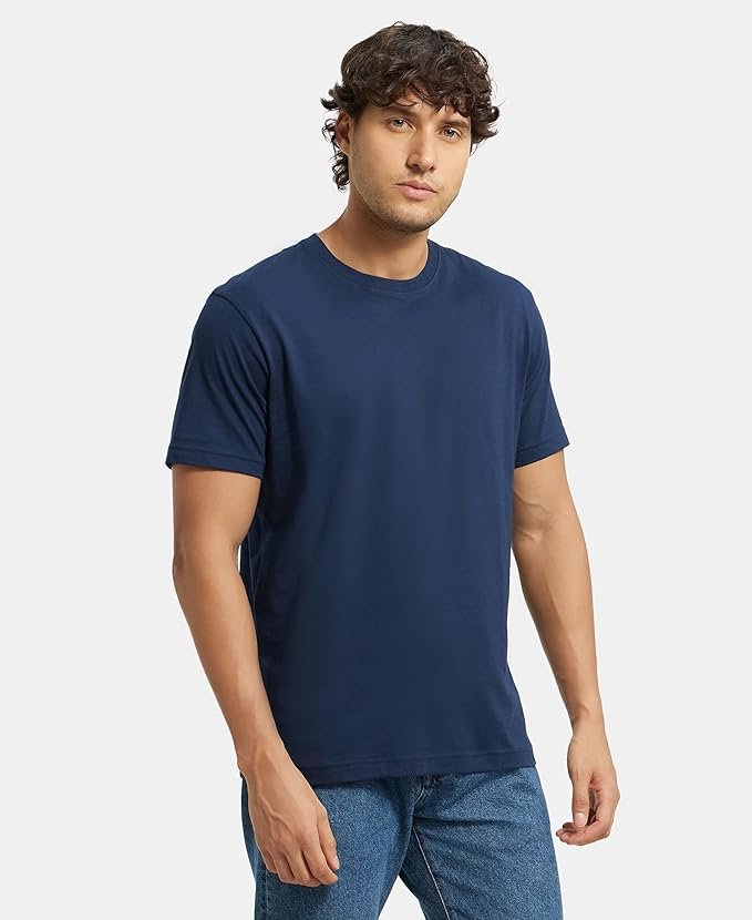 Men's Super Combed Cotton Rich Solid Round Neck Regular Fit Half Sleeve T-Shirt