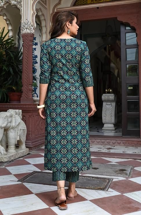 - Generic Name : Printed Cotton Blend Straight Kurta Pant Dupatta Set - Stylish Ethnic Wear for Women
