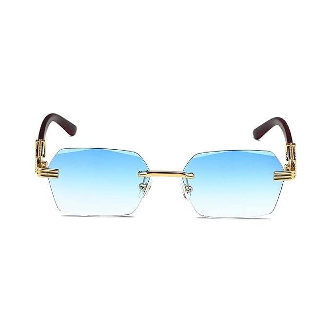 Rimless Rectangle Sunglasses | Unisex 90s Frameless Vintage Square Shades | UV Protection Fashion Eyewear for Men & Women Unisex Medium Size