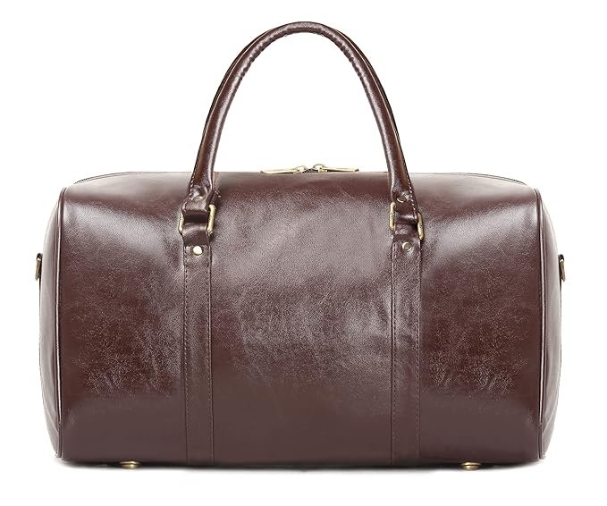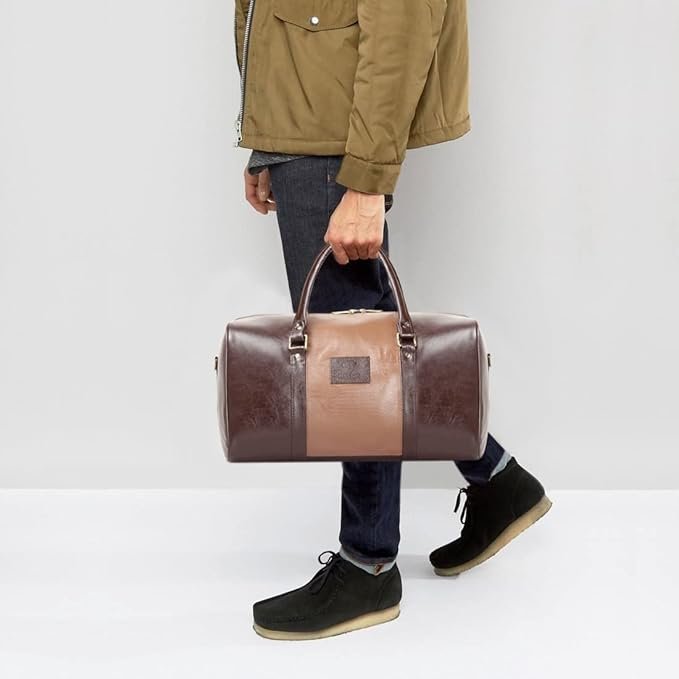 - PREMIUM MATERIAL: This stylish duffel bag is made of water resistant Vegan Leather material . For the inner lining we use soft feel polyester fabric. The metal fittings small sizeused are sturdy and durable.