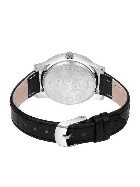 Unisex Kids Black Printed Dial & Black Leather Straps Analogue Watch
