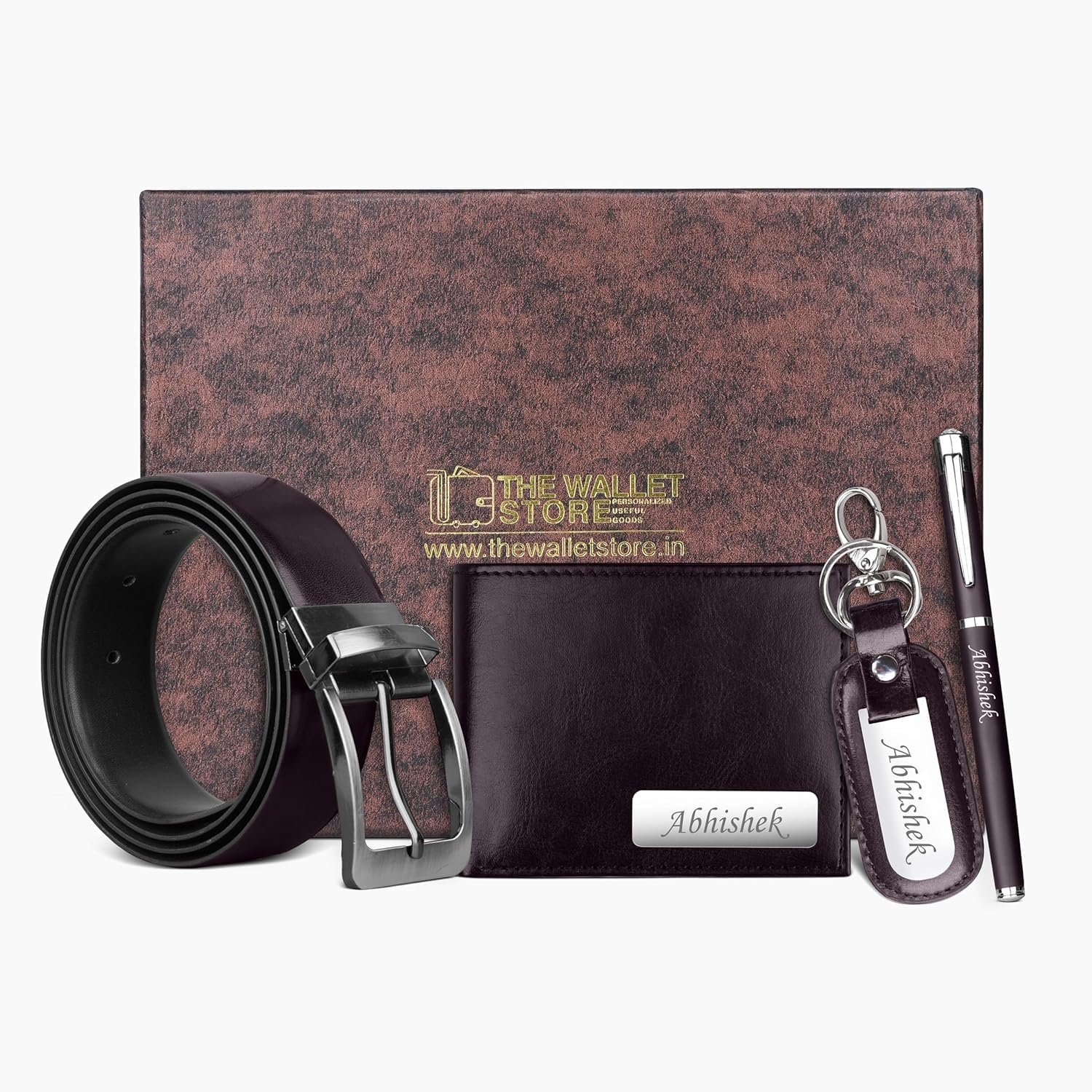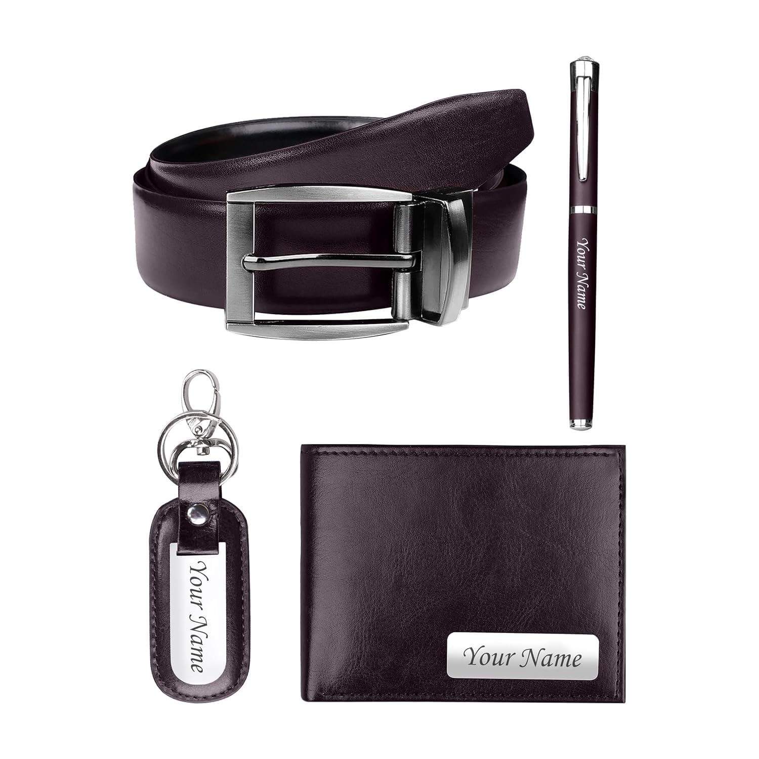 - Add a touch of personalization with name engraved on the wallet, pen & keychain, making it a unique and meaningful gift for yourself or a loved one.