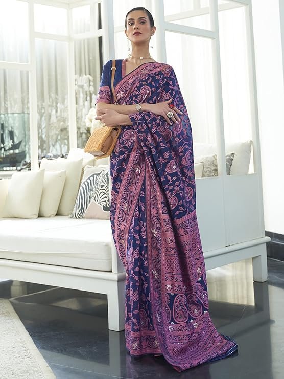 - Saree Color :-Dark Blue|| Blouse Color :-Navy Blue
