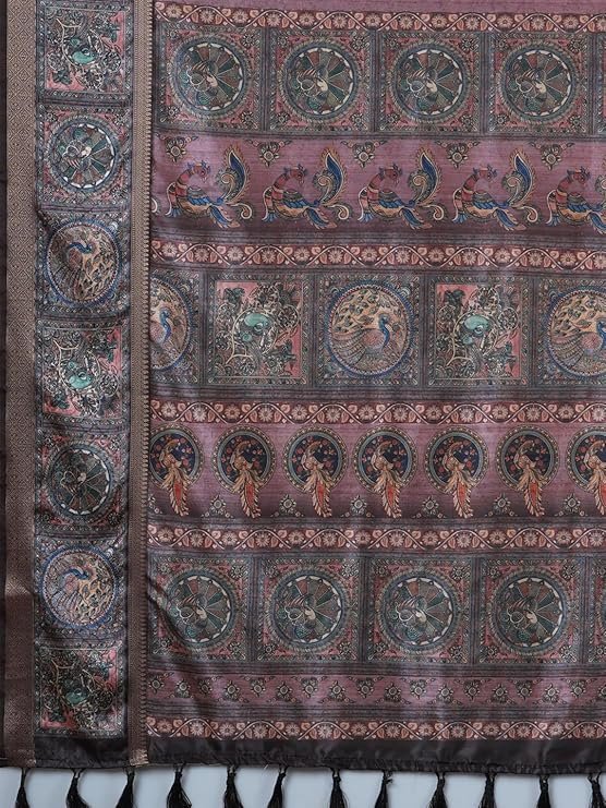 Women's Mysore Silk Kalamkari Printed Saree With Unstitched Blouse (SIVNYA101_SU_Parent)