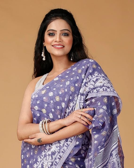 Women's Traditional Bengal Cotton Silk Jamdani Saree